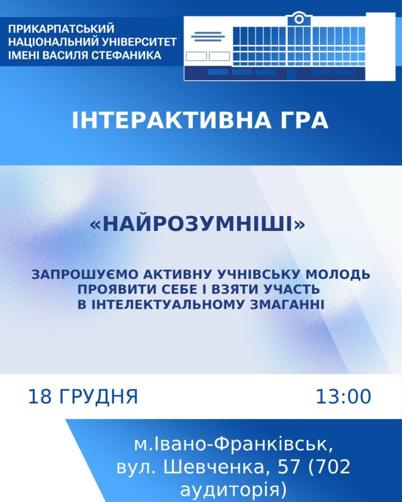 Запрошуємо абітурієнтів взяти участь в інтерактивній грі «Найрозумніші»