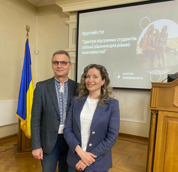 Проректор з науково-педагогічної роботи Карпатського (Прикарпатського) національного університету імені Василя Стефаника Сергій Шарин та завідувач кафедри логопедії та інноваційних технологій в інклюзії Оксана Джус взяли участь у роботі круглого столу «Центри підтримки студентів: спільні рішення для рівних можливостей».