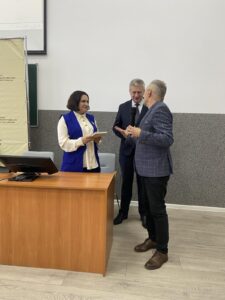 Відзнаку урочисто вручив віце-президент Асоціації, доктор економічних наук, професор, гостьовий професор кафедри міжнародних економічних відносин Ігор Євгенович Журба – за багаторічну працю, професійні здобутки, організацію діяльності та розбудову Івано-Франківського осередку Асоціації, а також за започаткування навчання й професійної підготовки студентів у галузі міжнародних економічних відносин у нашому університеті.