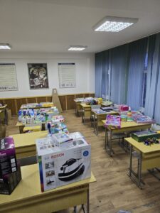 Окрім подарунків, вдалося забезпечити й важливі побутові потреби: набори кухонного посуду, миючий пилосос BOSCH BWD41740, бактерицидний опромінювач EKRAN Jal, засоби гігієни та побутову хімію. Діти також отримали одяг і взуття – куртки, комбінезони, светри, футболки, сорочки, плаття, шапки, взуття, білизну та багато інших необхідних речей, які зігрівають не лише тіло, а й серце. Святкову атмосферу доповнили солодощі та мандарини.